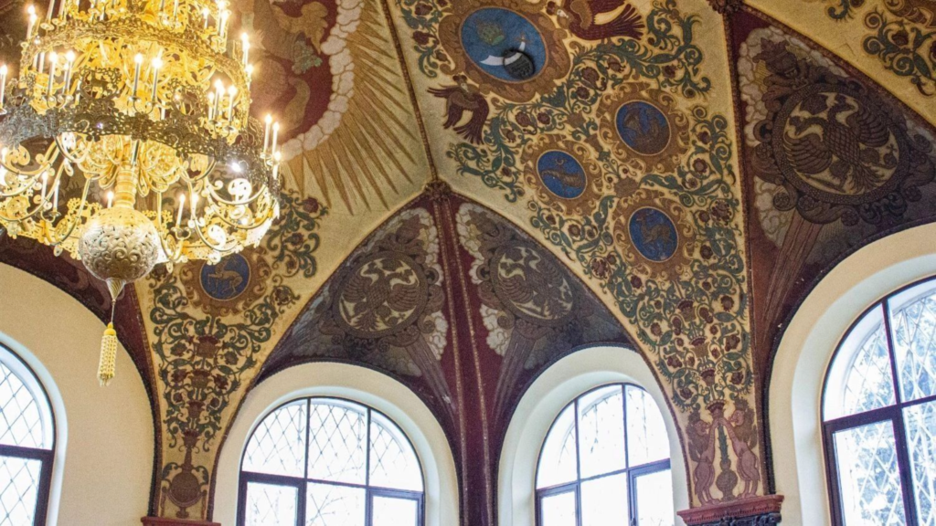 Построенный к 300-летию дома Романовых, Госбанк поражает своим внутренним убранством: уникальными росписями по эскизам Ивана Билибина, резными деталями и атмосферой императорской России. Однако сегодня здание является действующим подразделением Центрального банка РФ. Статус режимного объекта диктует жесткие правила: