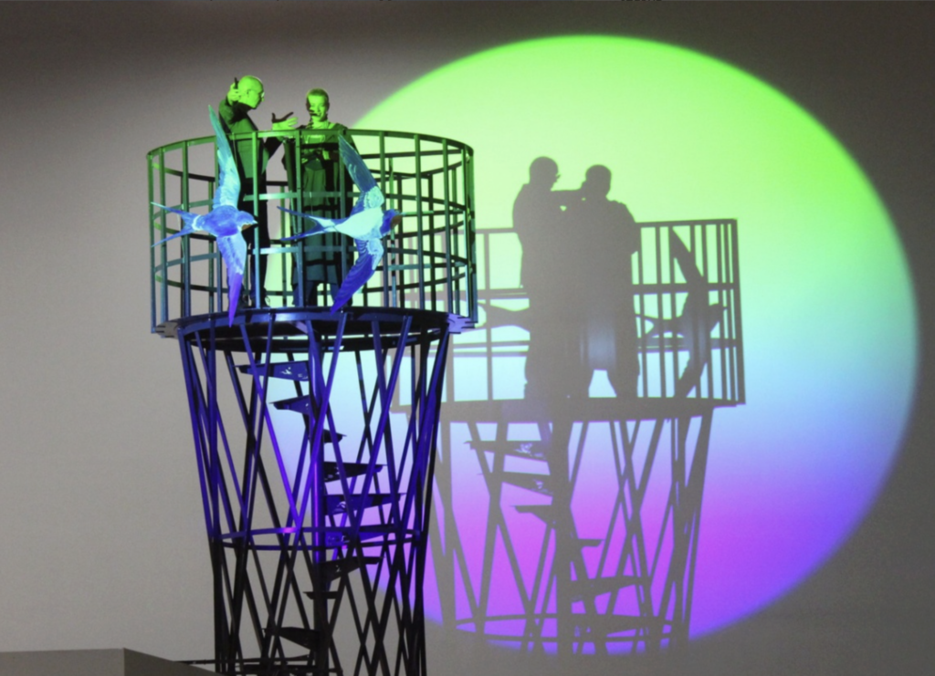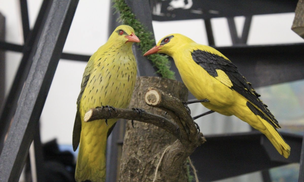 Одним из главных арт-объектов стала семиметровая металлическая копия Шуховской башни от нижегородской команды «Артемовские луга». Композицию дополняют деревянные фигурки птиц резчика Евгения Емельянова и пейзажное полотно художника Леонида Колосова. Как пояснил учредитель АНО «Артемовские луга» Вячеслав Зобов, орнитологическую вышку изначально создавали для наблюдения за птицами, а идея представить её на выставке родилась позже.